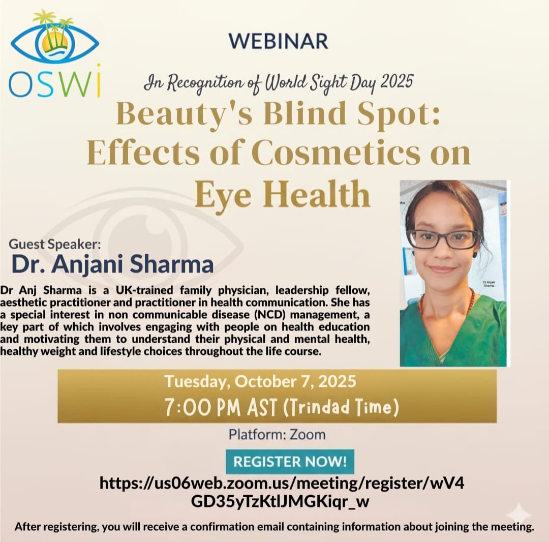 SWI invites you to a special Webinar: Beauty’s Blind Spot: Effects of Cosmetics on Eye Health🎤 Guest Speaker: Dr. Anjani Sharma 📅 Tuesday, October 7,