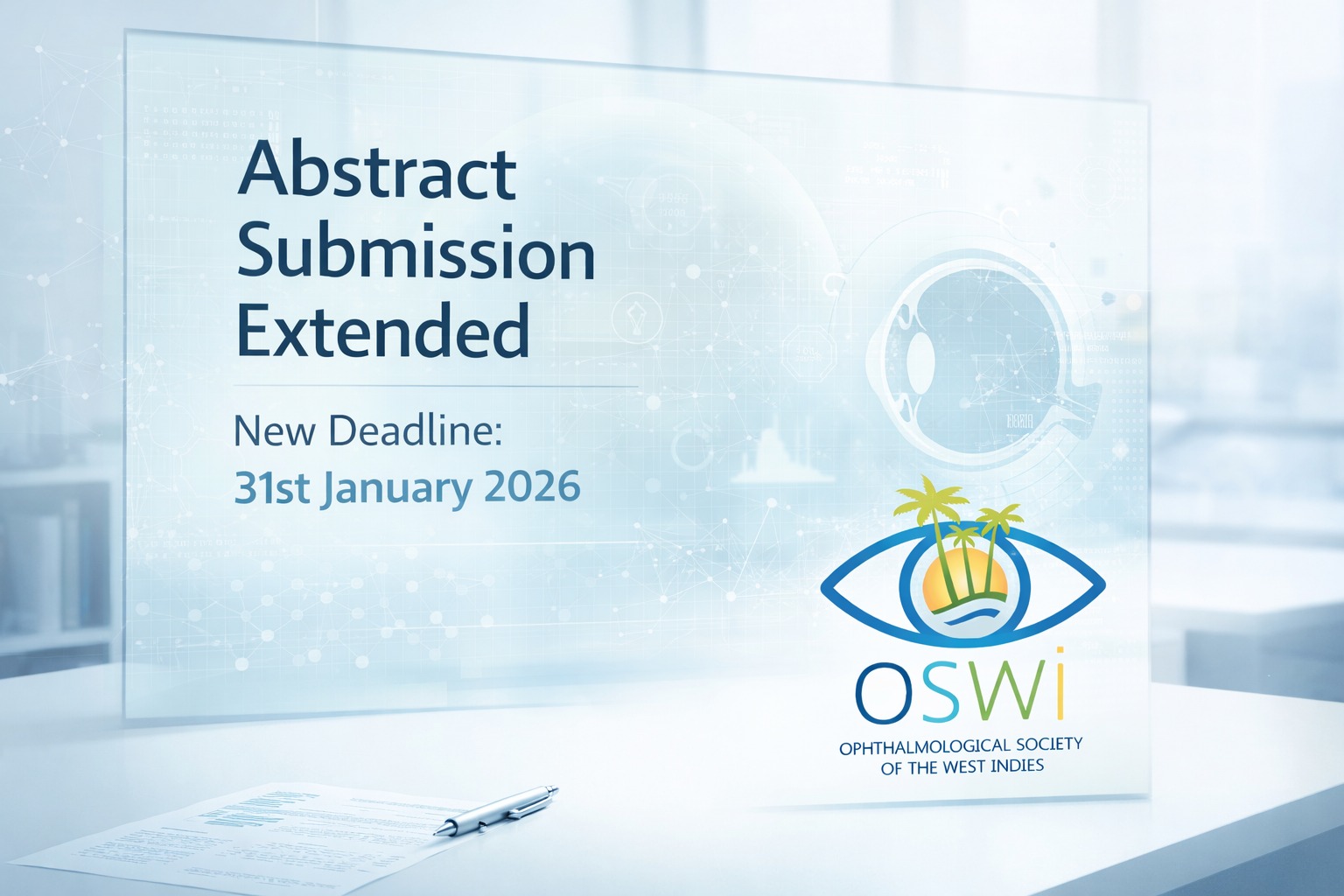 The OSWI Abstract Submission deadline is now 31st January 2026 — giving you more time to share work that informs, challenges, and advances ophthalmic care across the Caribbean.
